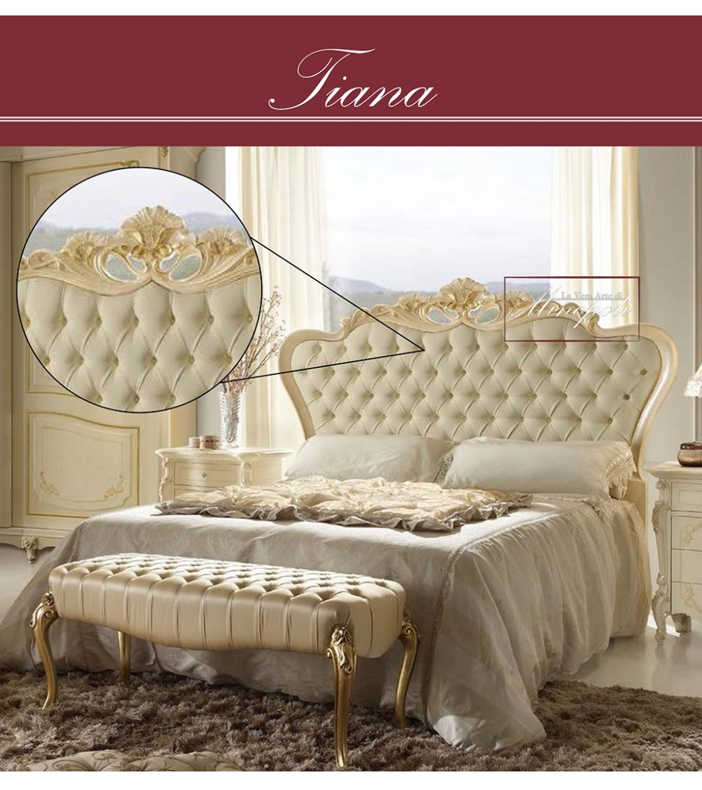 Queen size bed Baroque container faux leather wood gold silver Diana