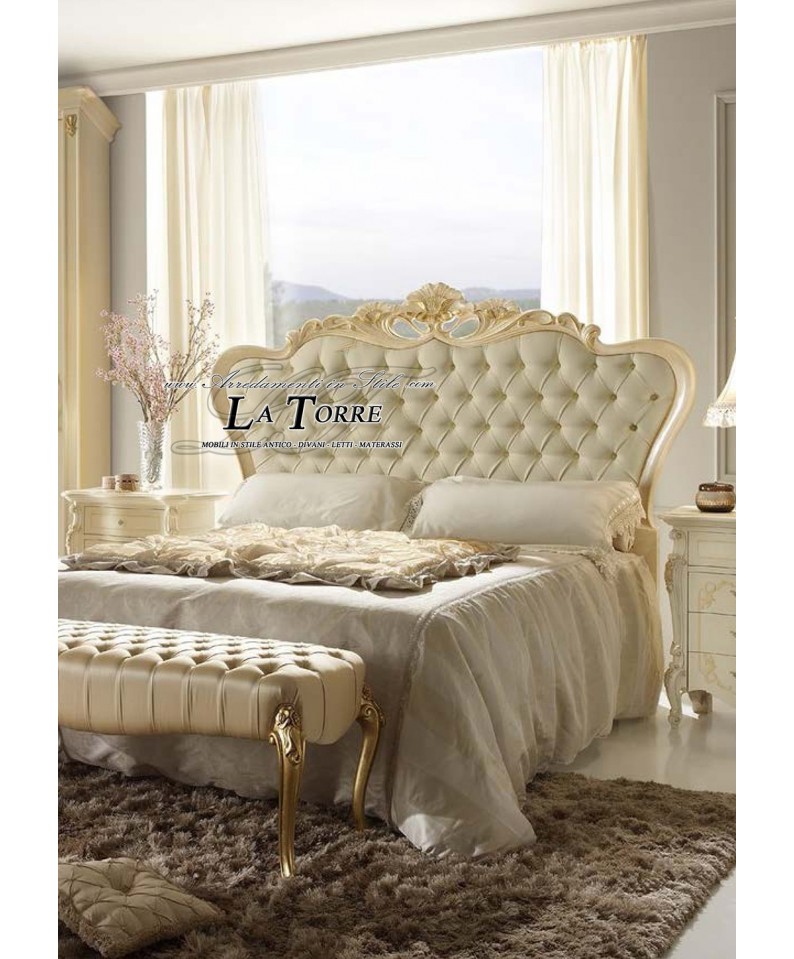 Baroque double bed with container, eco-leather or velvet, any color, wood, gold, silver, Diana