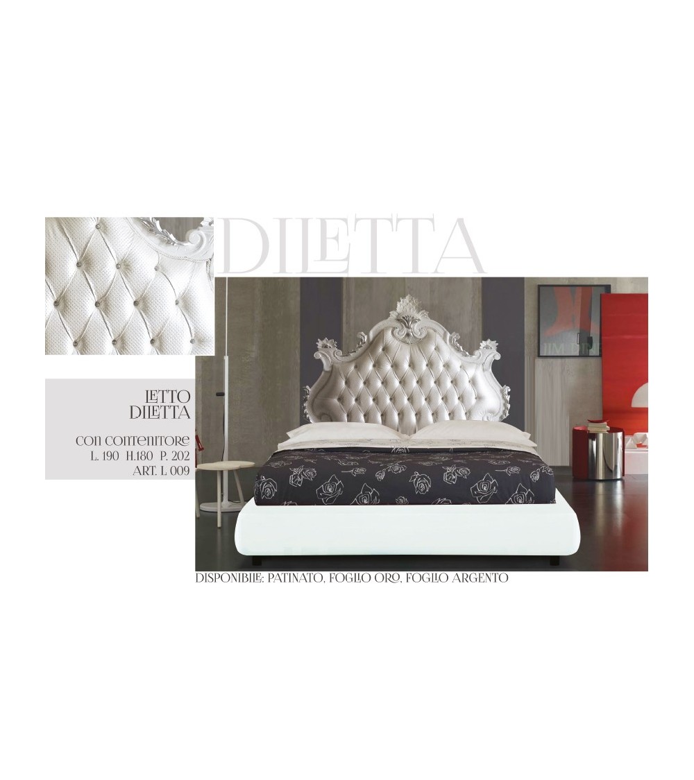 Double bed with container in Baroque eco-leather, wood, gold and silver Diletta