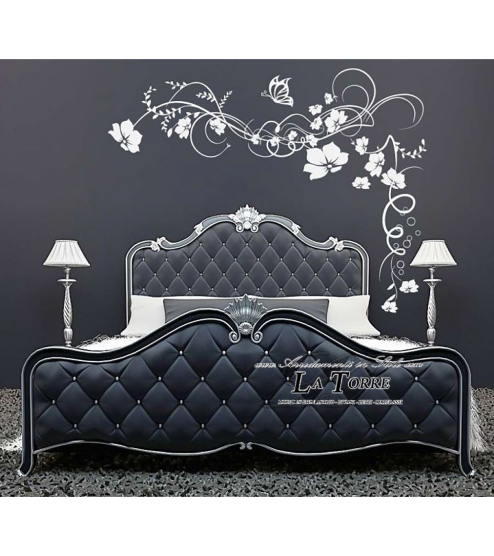 Baroque container double bed in velvet or eco-leather solid wood gold silver Liam