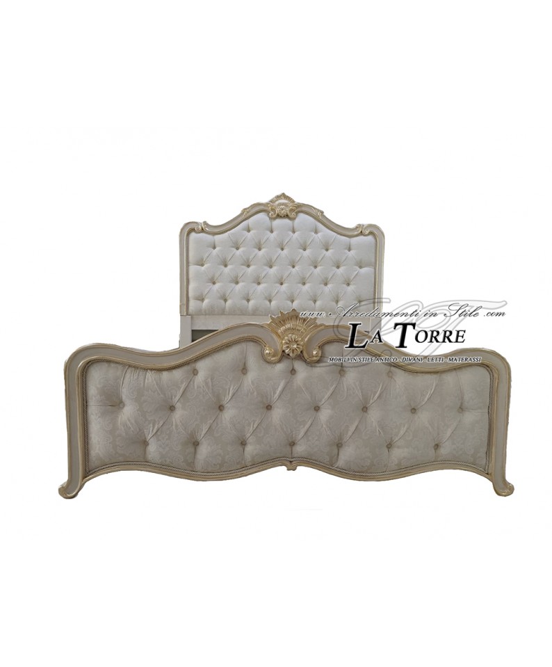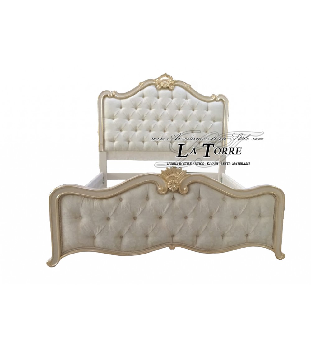 Baroque container double bed in velvet or eco-leather solid wood gold silver Liam