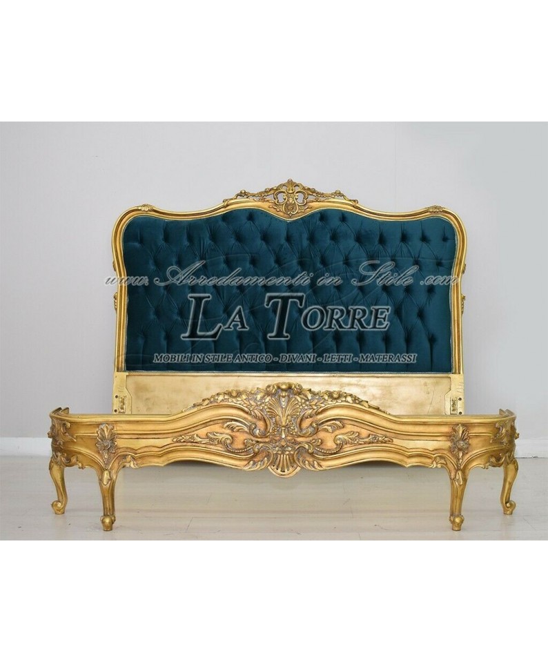 Selly Louis XV Empire Baroque Double Bed Gold Green Velvet AL1779