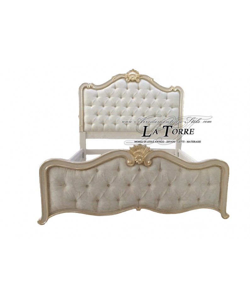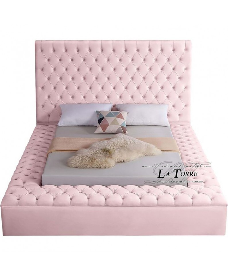 Double bed container Baroque fabric or eco-leather solid wood any color Elodie