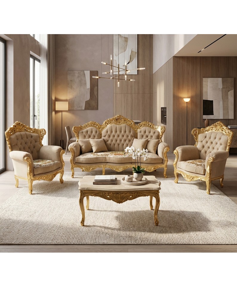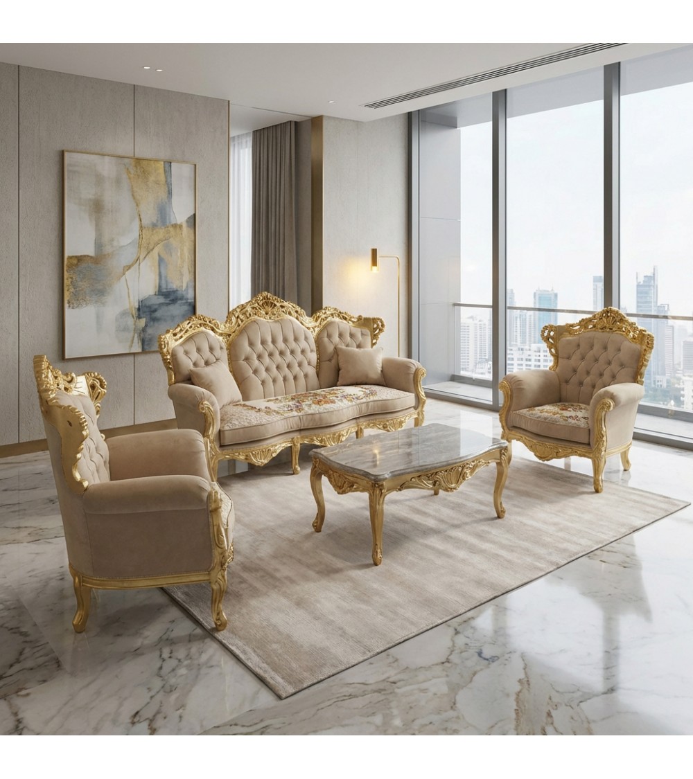 Baroque Living Room Germany AL1242 Gold Leaf with Capitonné 3 Seater Sofa 2 Armchairs Matching Coffee Table Customizable AL1242