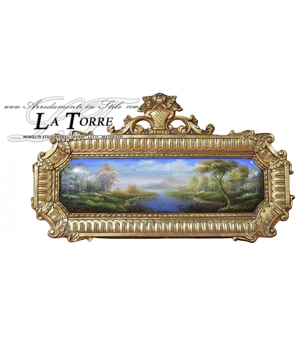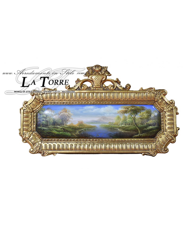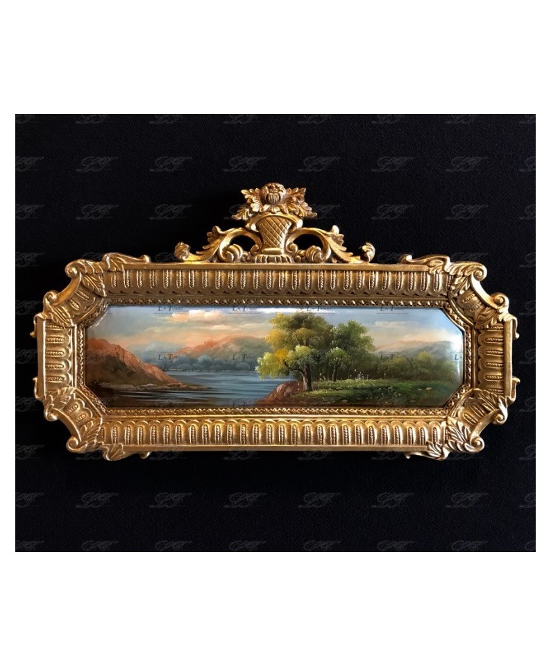 Antique baroque painting oil painting horizontal gold medallion landscape 52x95 D21