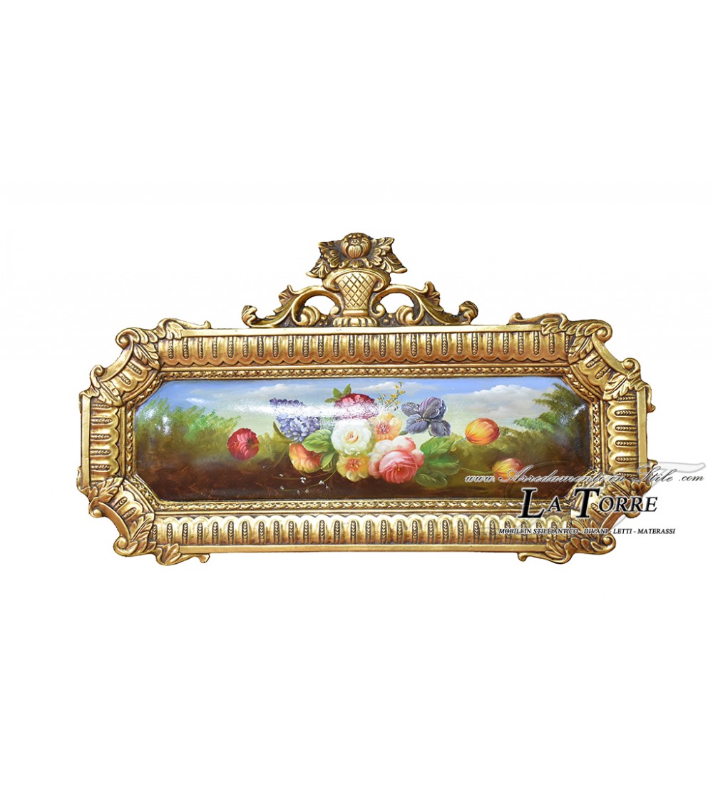 Antique baroque painting oil painting horizontal gold medallion flowers 52x95 D22