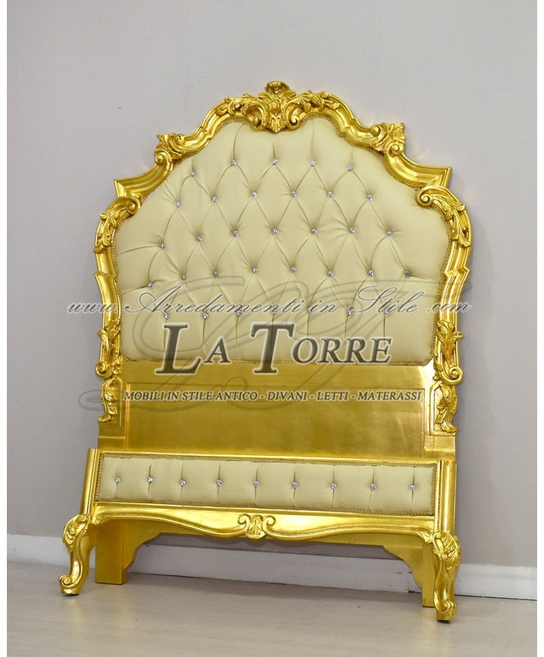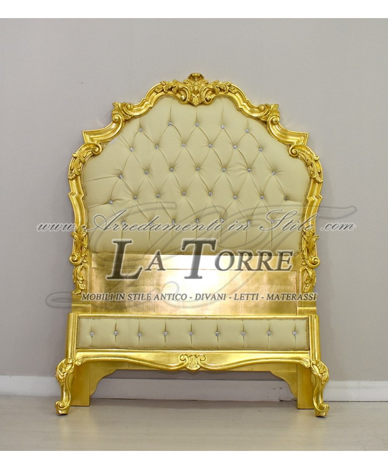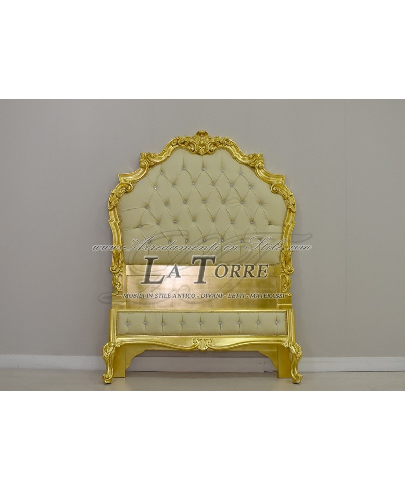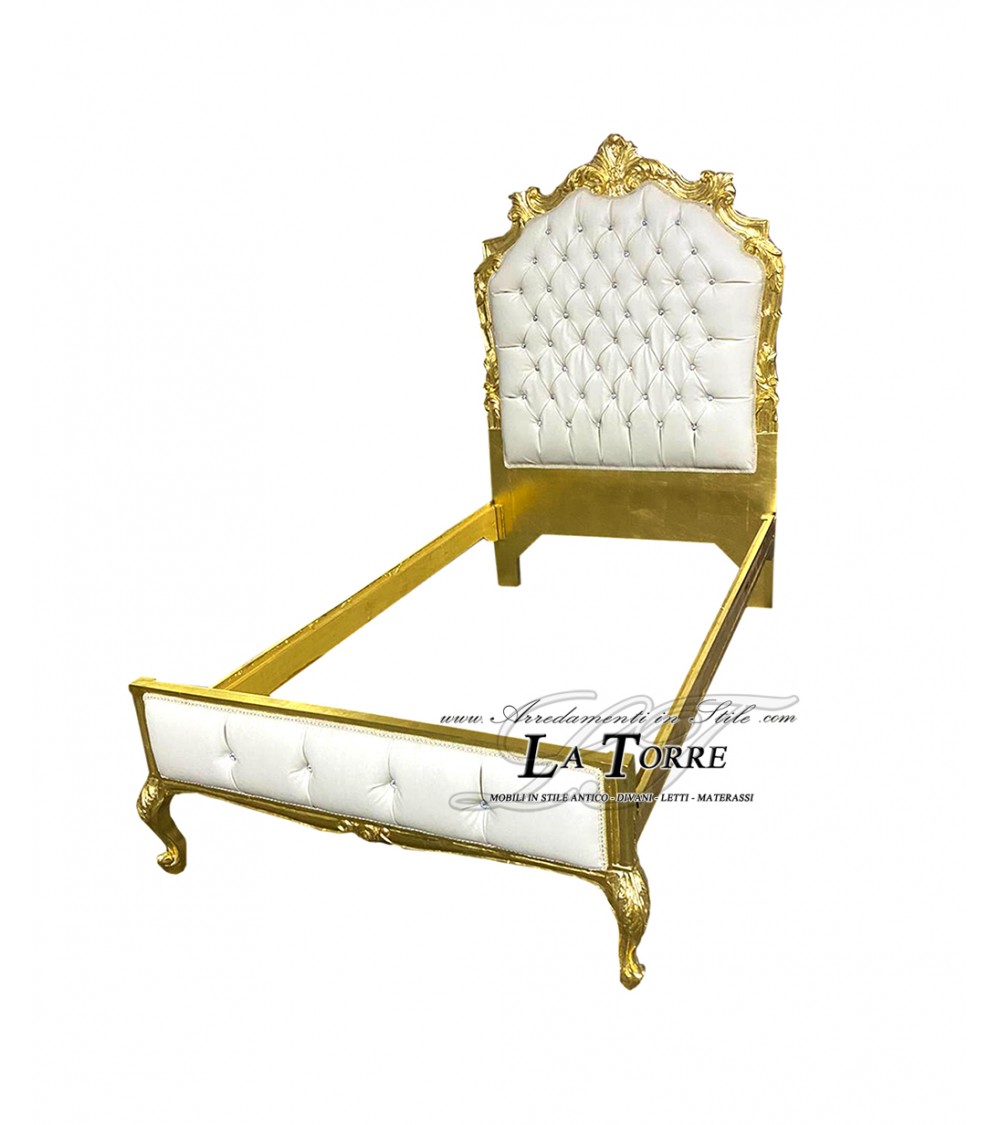 Baroque Louis XV single bed gold faux leather champagne Swarovski AL1562