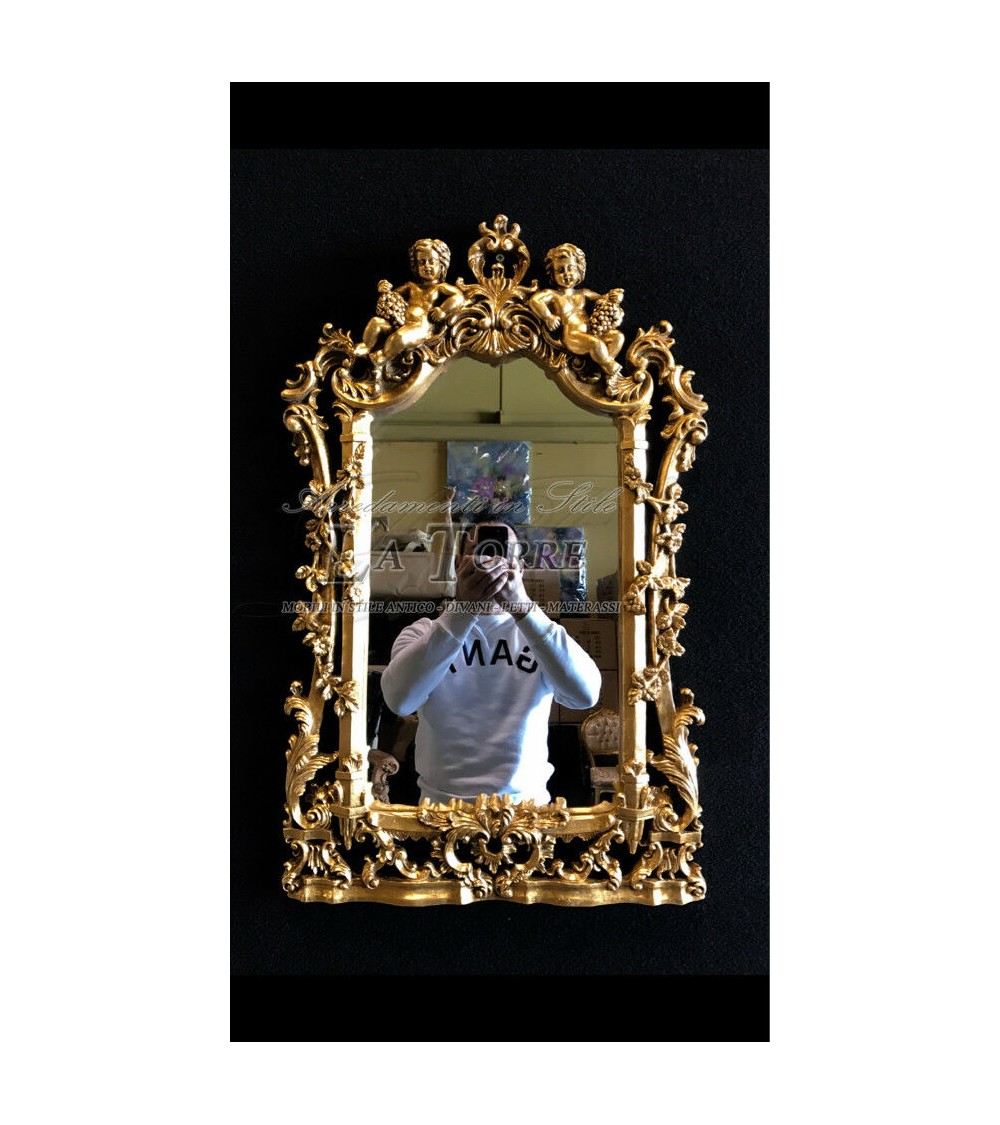 Antique gold leaf carved baroque cut glass wall mirror S09