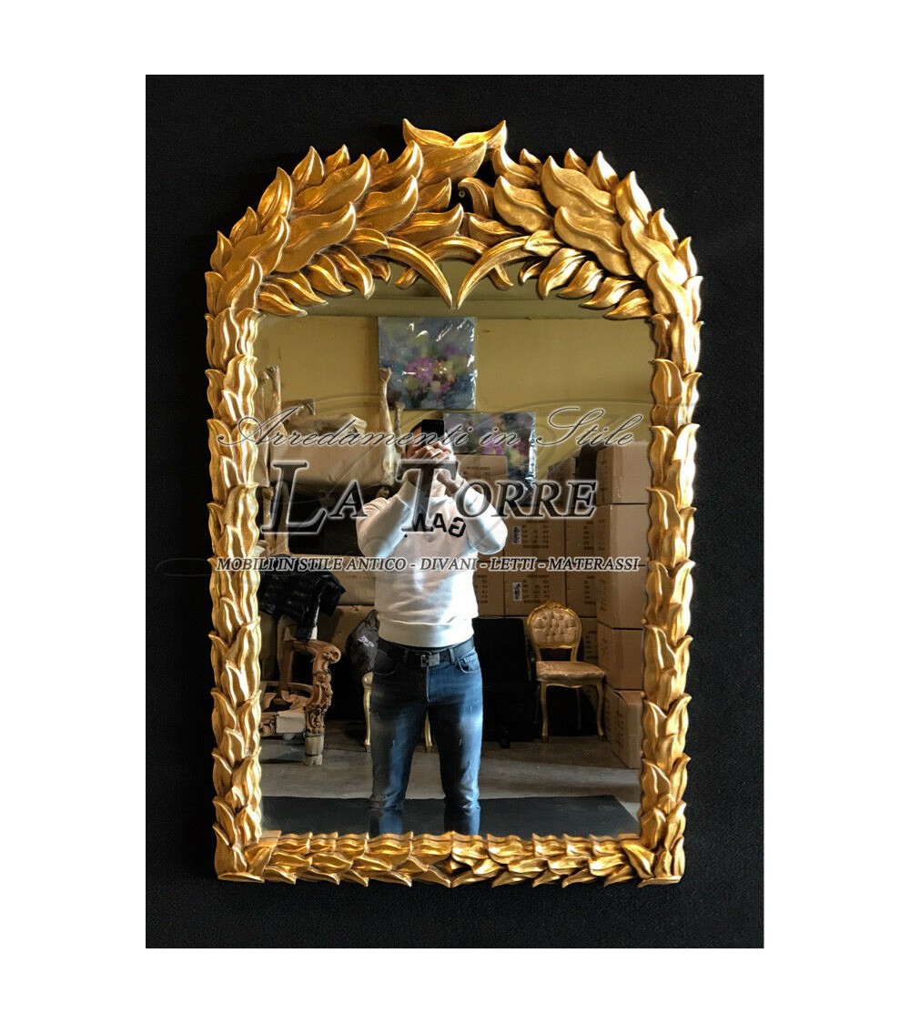 Carved antique gold leaf baroque beveled glass wall mirror S11