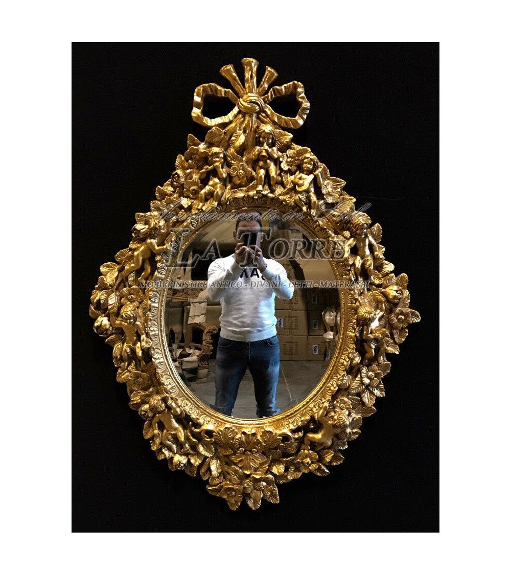 Carved mirror antique gold leaf baroque oval wall mirror S16