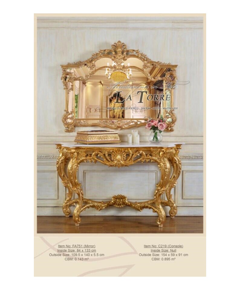 Classic gold leaf antique style baroque cut glass wall mirror Fa751