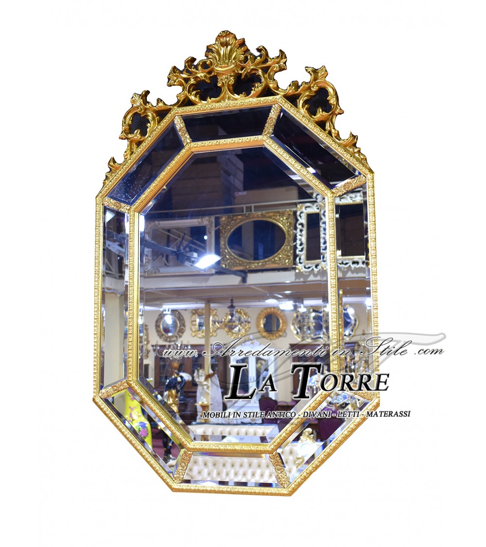 Octagonal wall mirror classic antique style gold leaf baroque bevelled glass Pu924