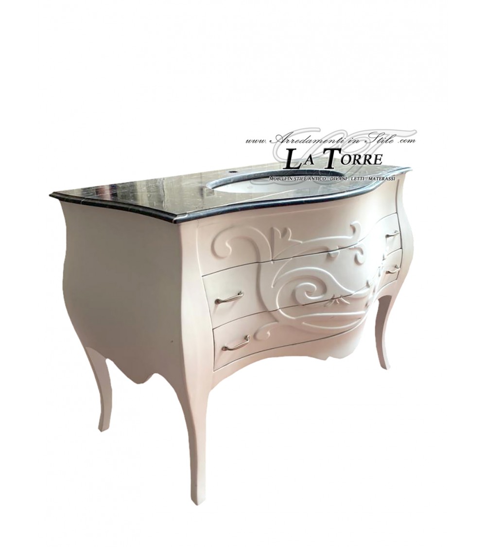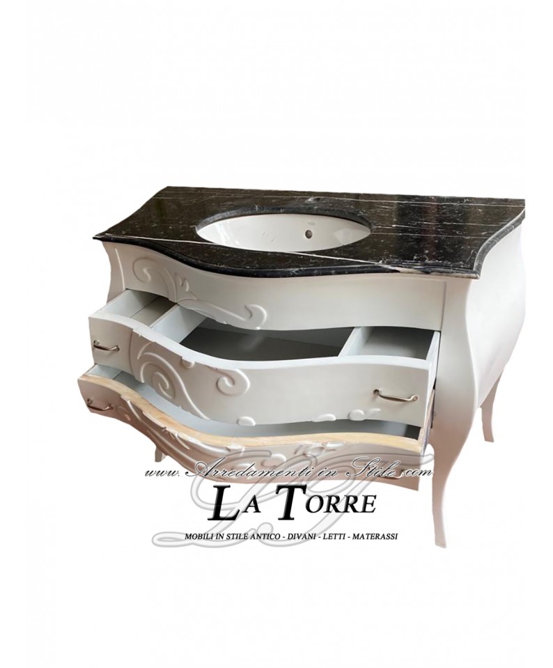Louis XV bathroom cabinet in white, black marble, curved, modern Baroque style Mi01