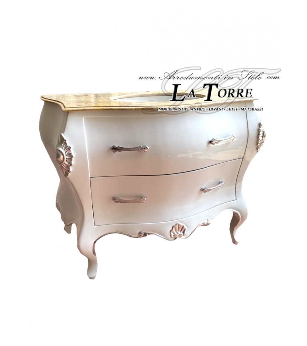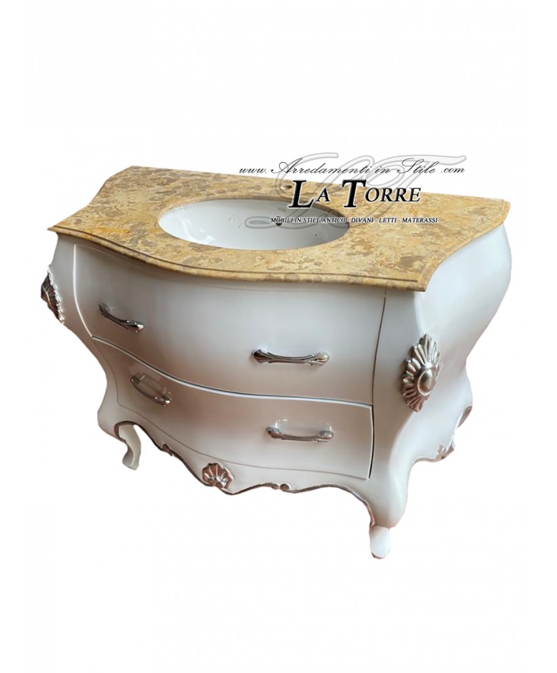 Louis XV bathroom cabinet white with silver leaf details in ivory marble rounded modern baroque Mi02