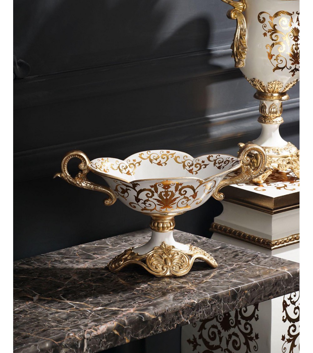 Jatte ceramic bowl centerpiece ivory gold ornament Vi27