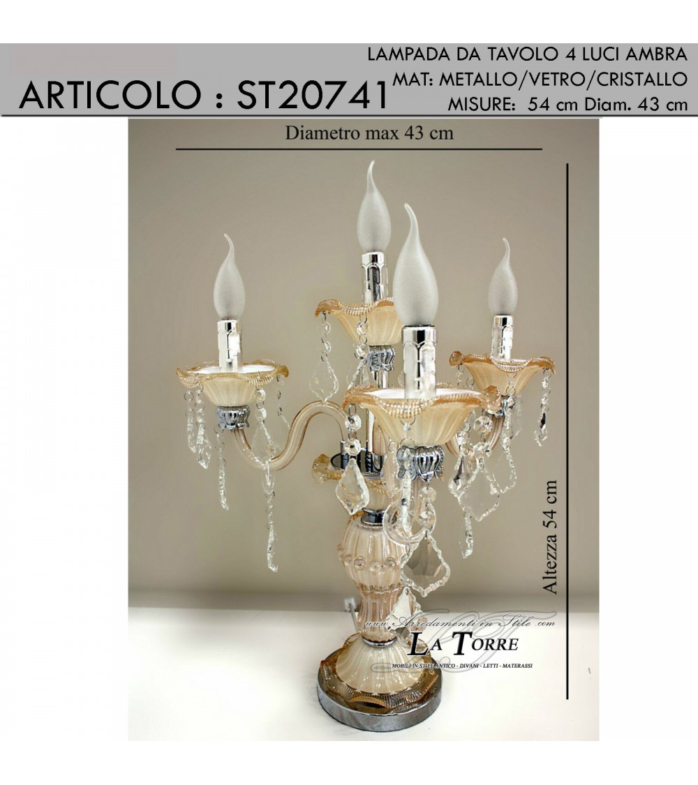 Pair of classic crystal candlestick table lamps 4 lights ST20741 lampshade