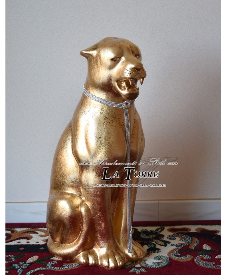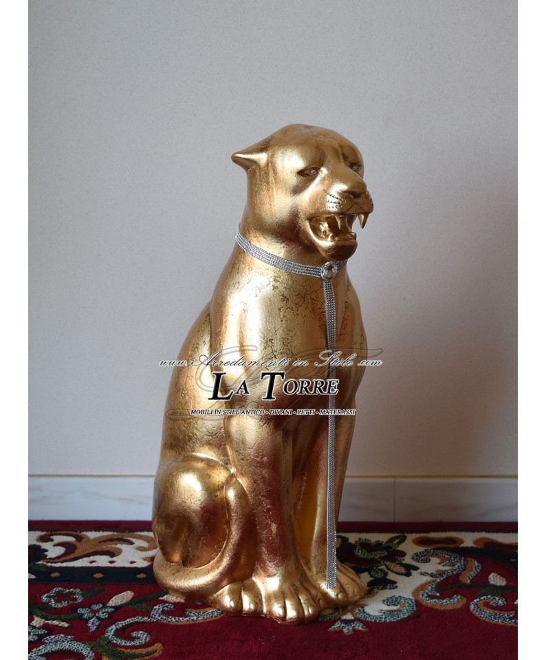 Ceramic animals statue sculpture panther puma gold cracklé leopard swarovski h70cm PR31