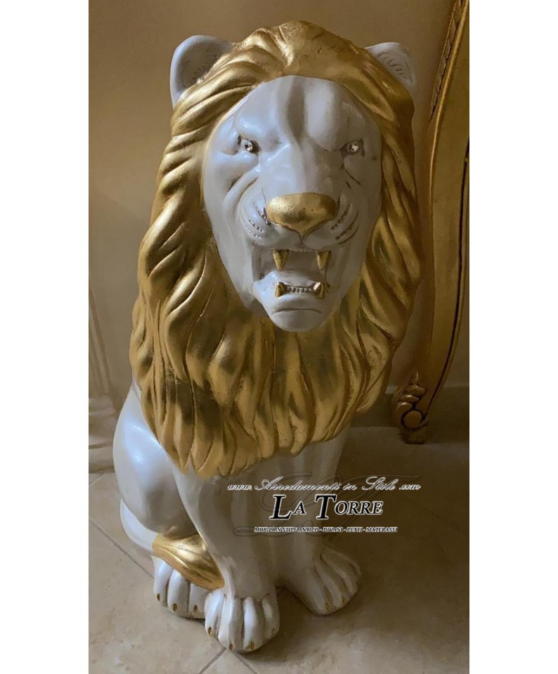 Lion sculpture statue open mouth ivory gold swarovski ceramic h 90cm