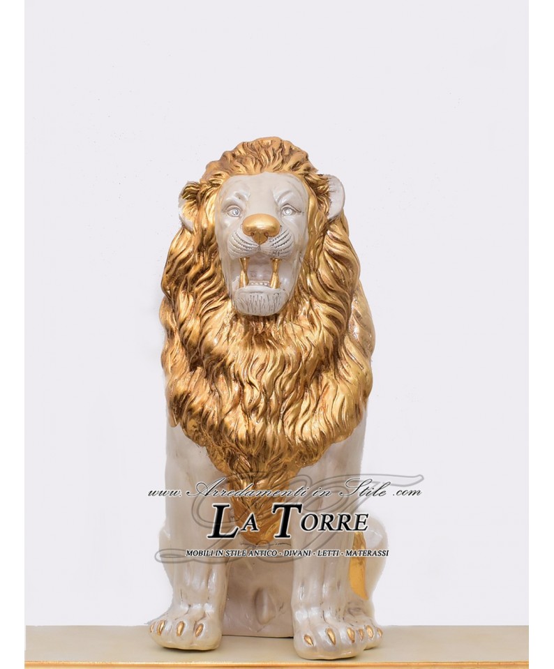 Lion sculpture statue open mouth white gold with swarovski pearl ceramic h 90 cm