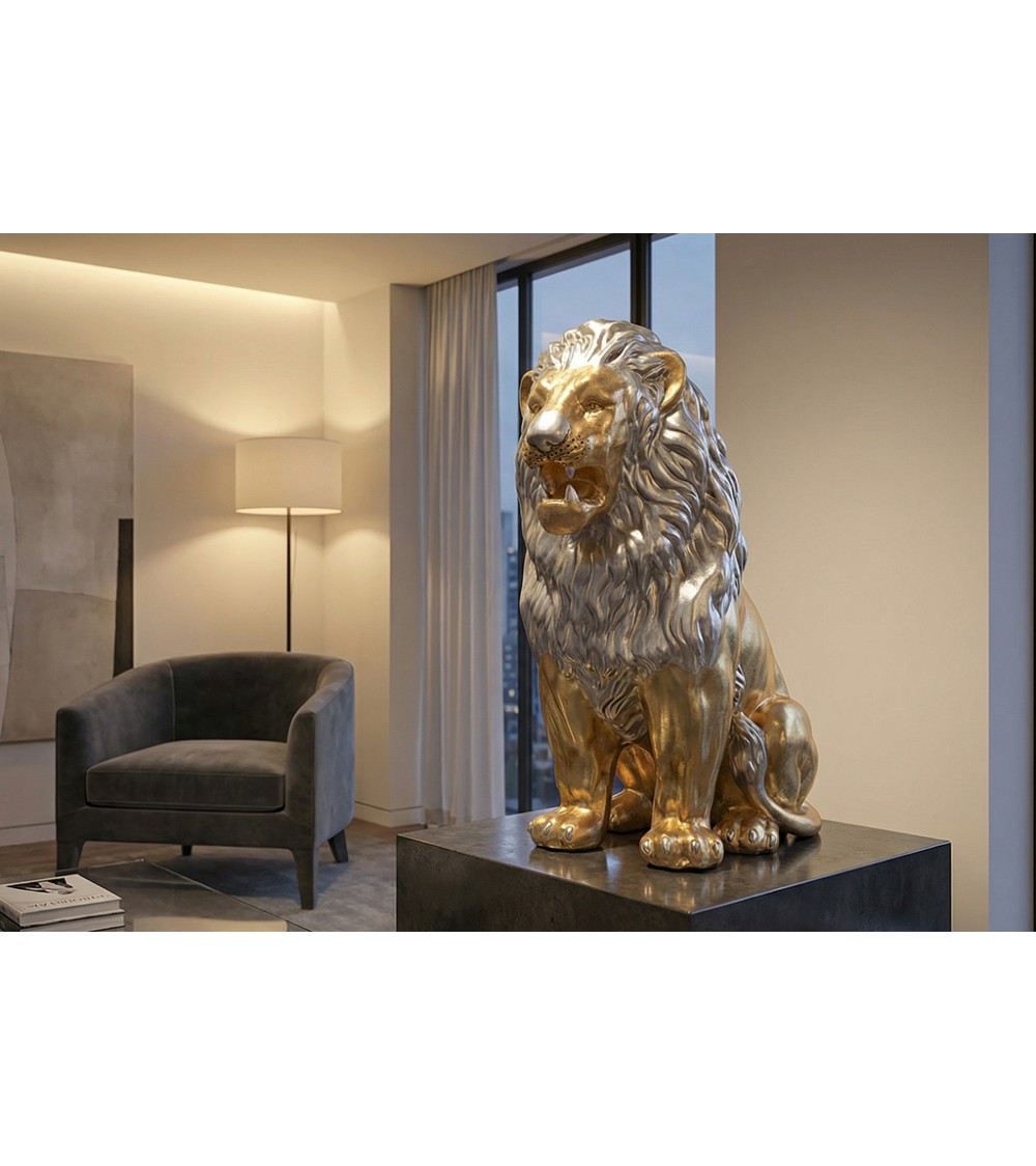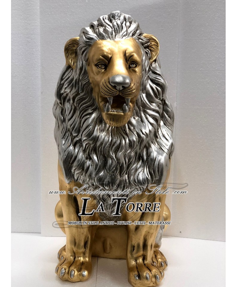 Ceramic animals statue sculpture Lion open mouth gold leaf mane silver leaf swarovski h90cm PR14