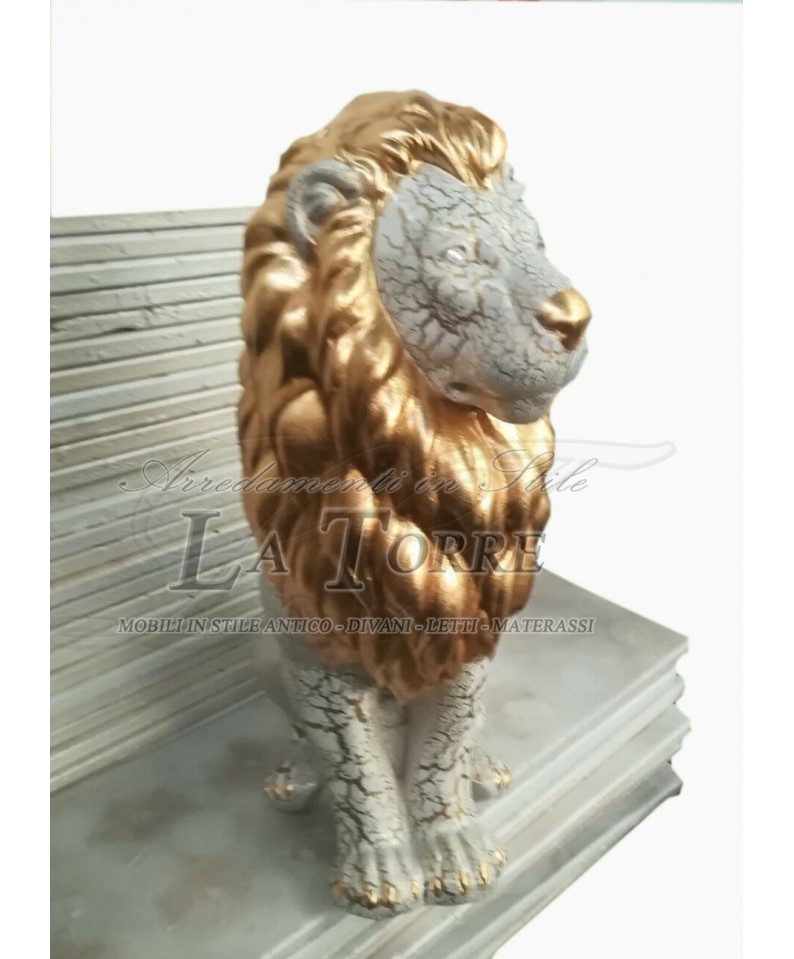Lion sculpture statue with closed mouth gold ivory cracklé swarovski ceramic h90 cm PR23