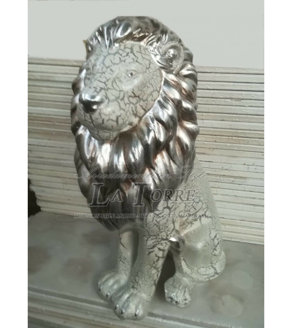 Ceramic statue sculpture Lion closed mouth Lion white cracklè mane silver leaf swarovski H90cm PR23