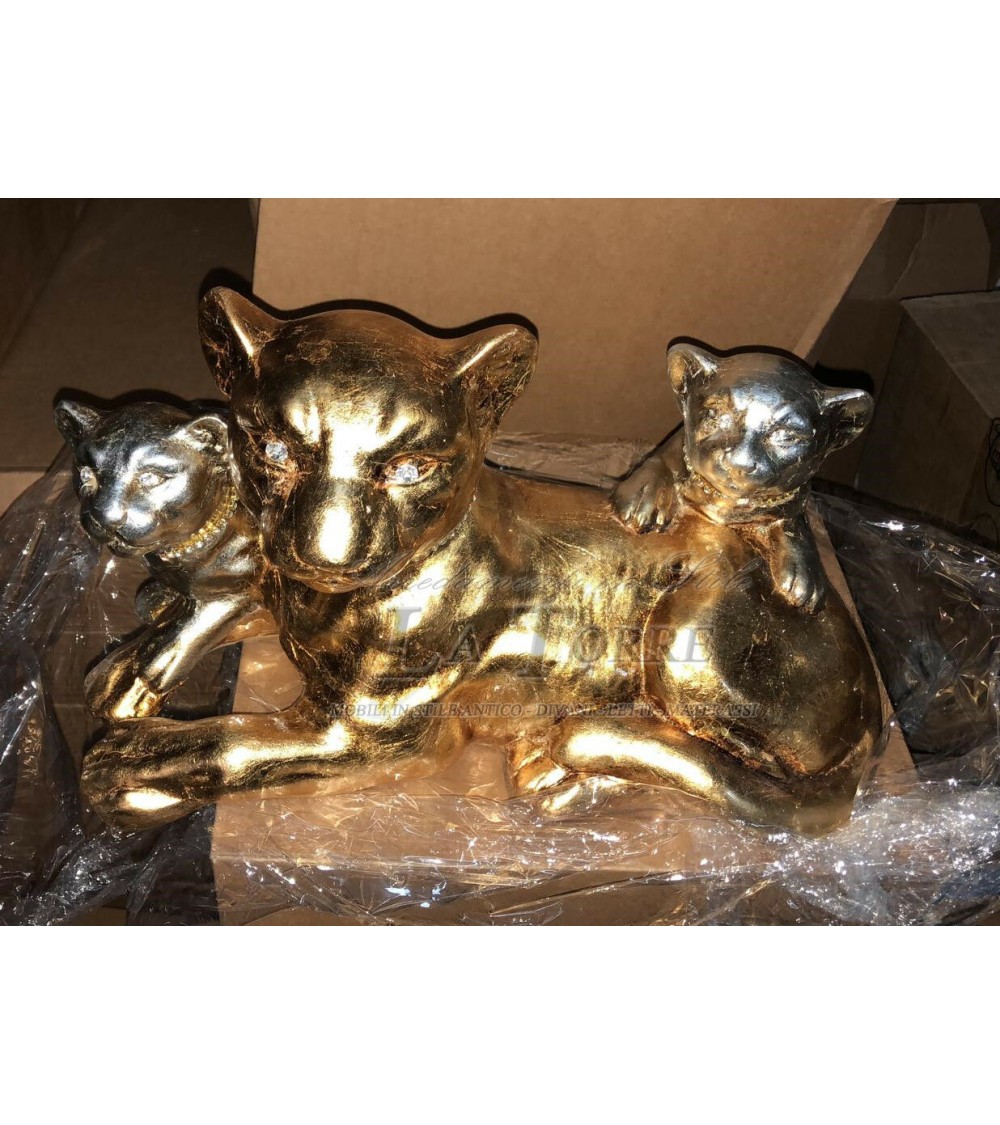 Statue furnishing accessories sculpture panther puppies gold leaf ceramic animals