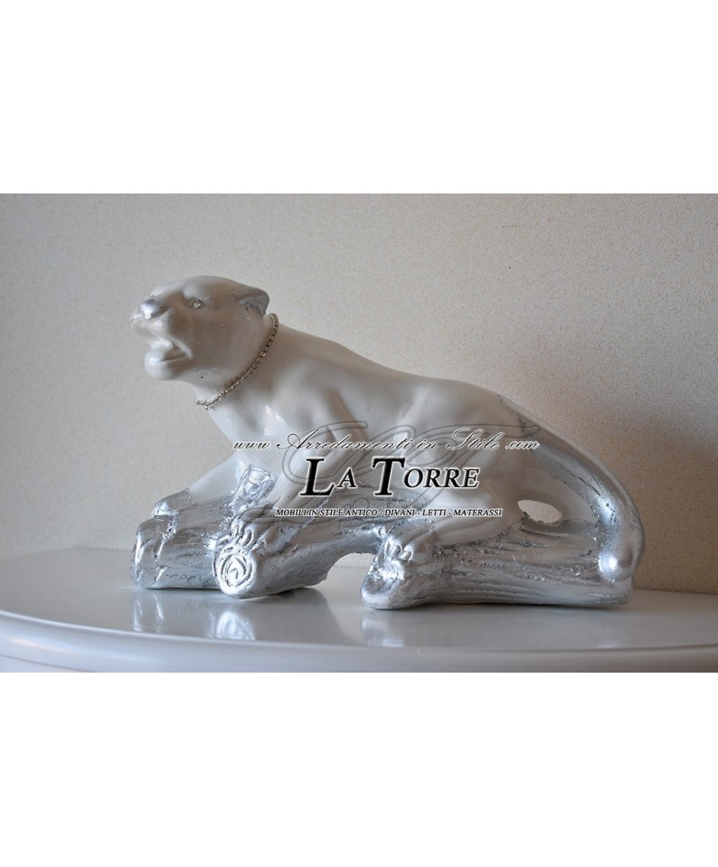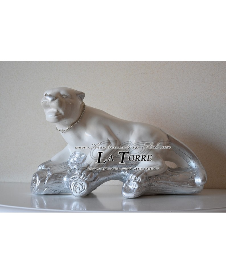 Ceramic animals statue white panther silver ferocious on swarovski branch L 34
