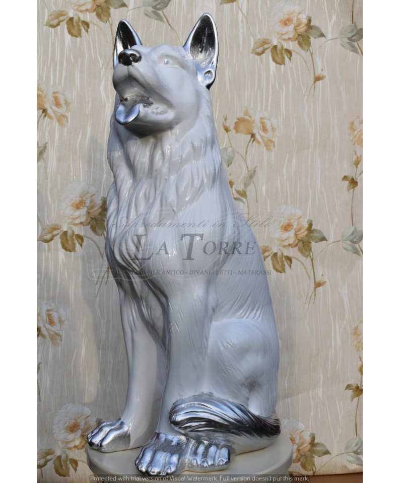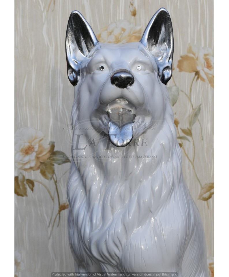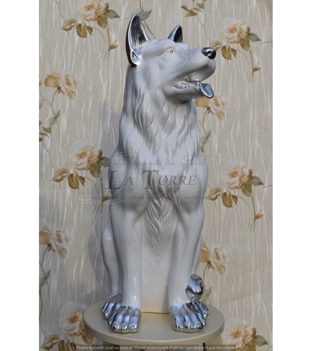 Ceramic statue sculpture German Shepherd Dog white silver dog swarovski 70 cm
