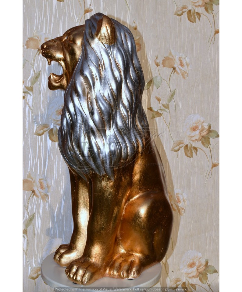 Lion sculpture ceramic statue open mouth Lion gold silver swarovski 70 cm