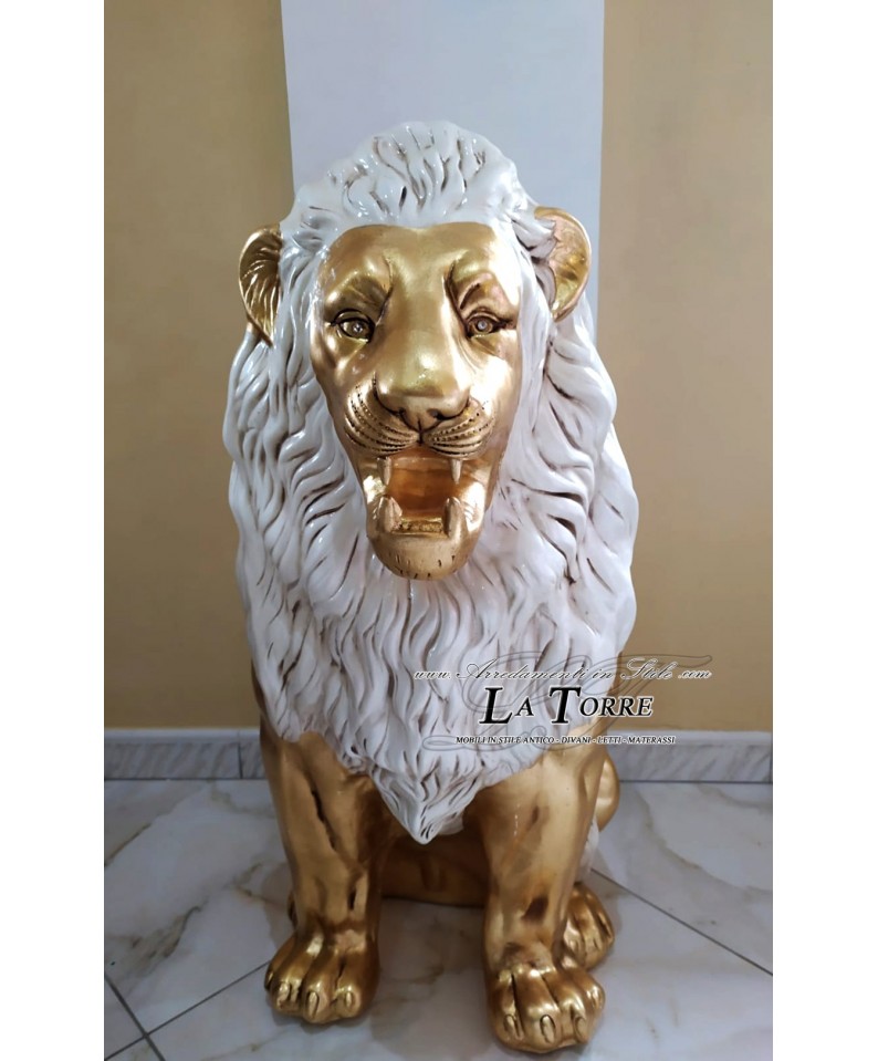 Ceramic animals statue sculpture Lion open mouth gold leaf mane ivory swarovski H90cm PR14
