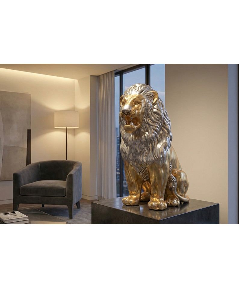 Lion sculpture ceramic statue open mouth Lion gold silver swarovski 90 cm
