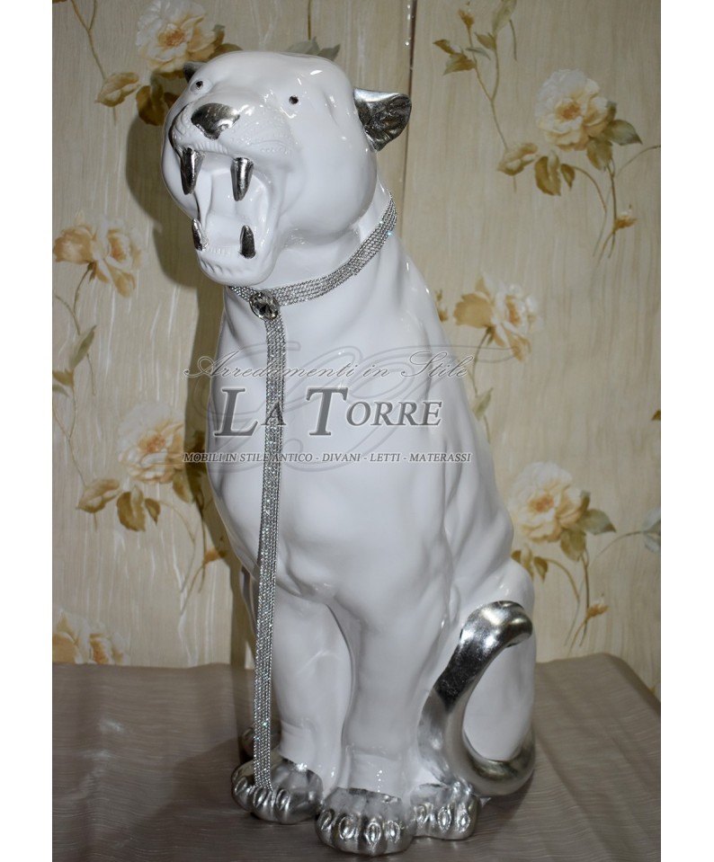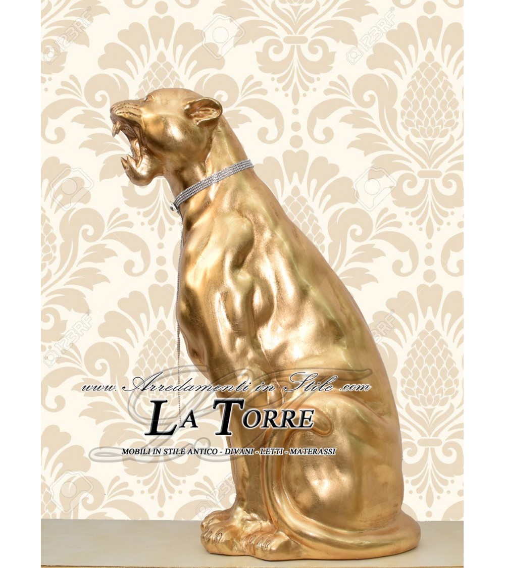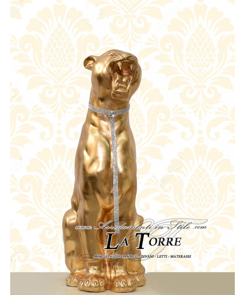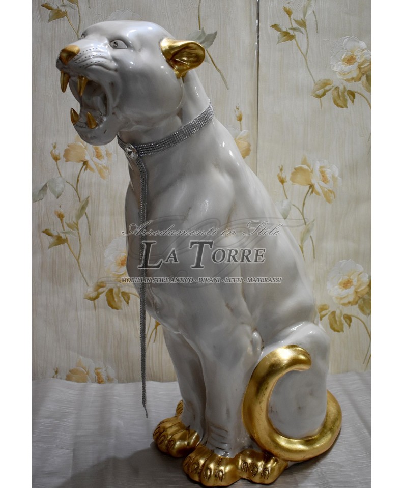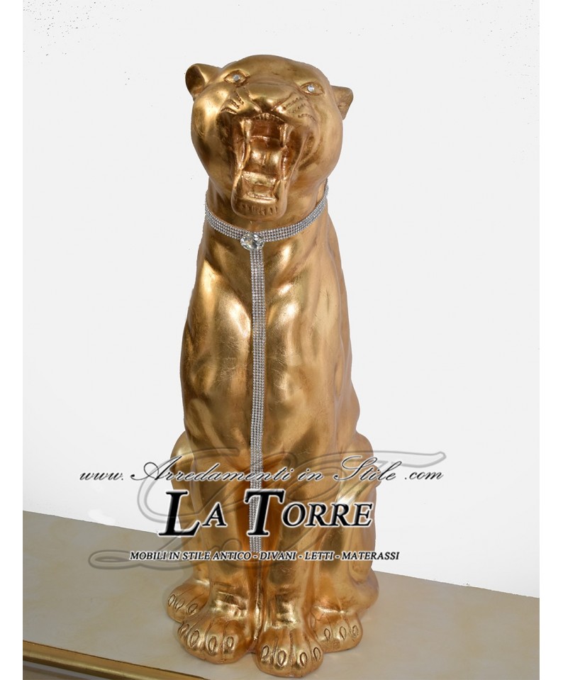 Ceramic statue sculpture Panther Leopard Puma gold leaf swarovski 90 cm