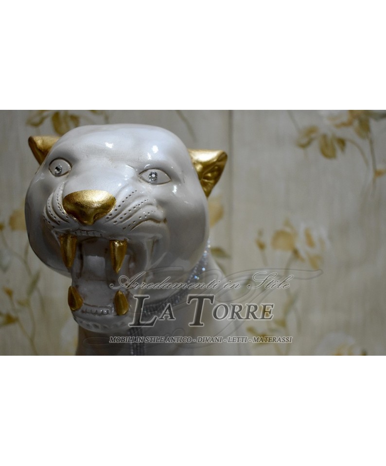 Ceramic statue sculpture Panther Leopard Puma white pearl gold swarovski 90 cm
