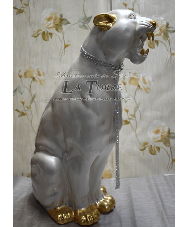 Ceramic animals statue sculpture Panther jaguar leopard Puma white pearl gold swarovski H80cm PR22