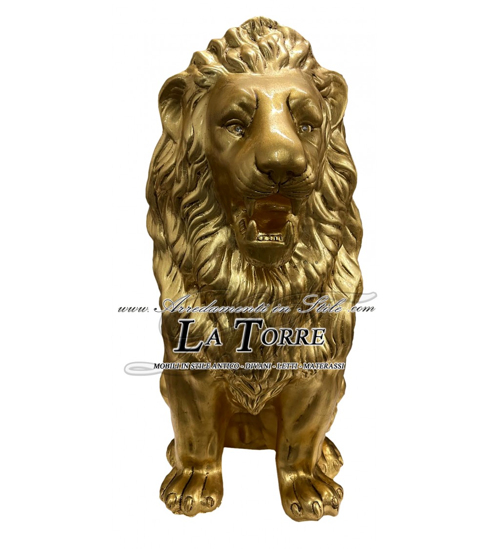 Lion sculpture ceramic statue open mouth Lion gold leaf swarovski 90 cm