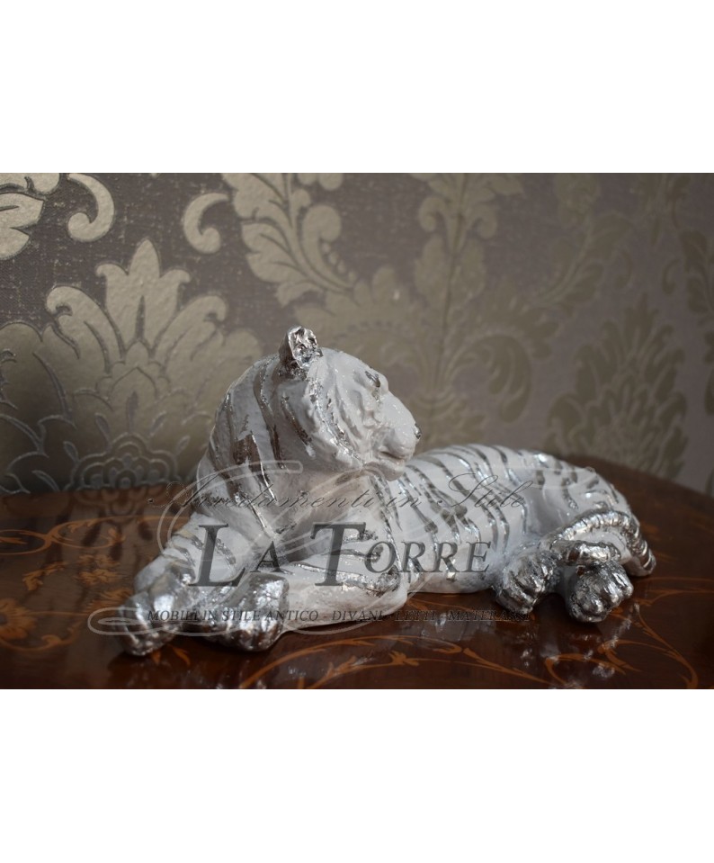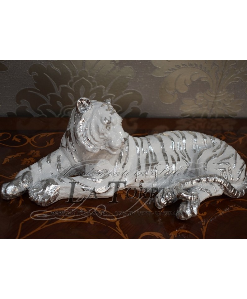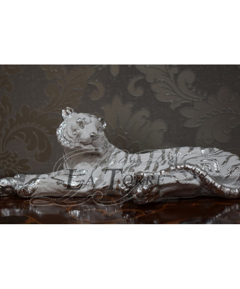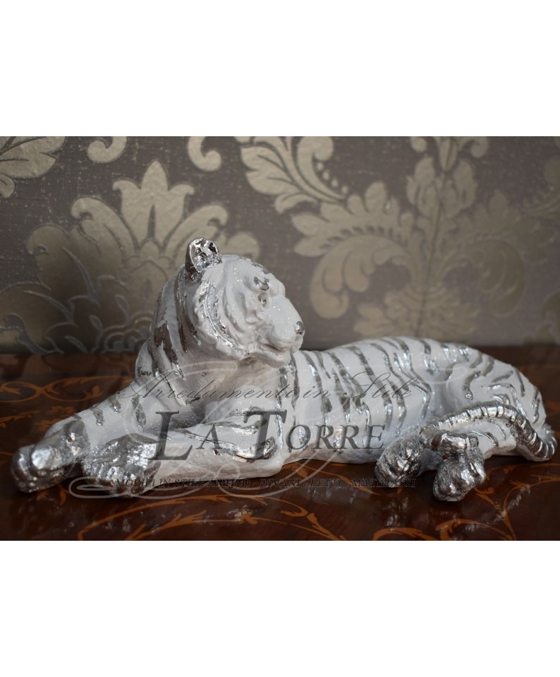 Malaysian tiger sculpture statue lying white silver swarovski animals