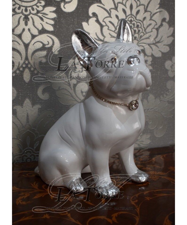 Ceramic animals statue sculpture puppy dog French bulldog white silver Swarovski h30cm PR09