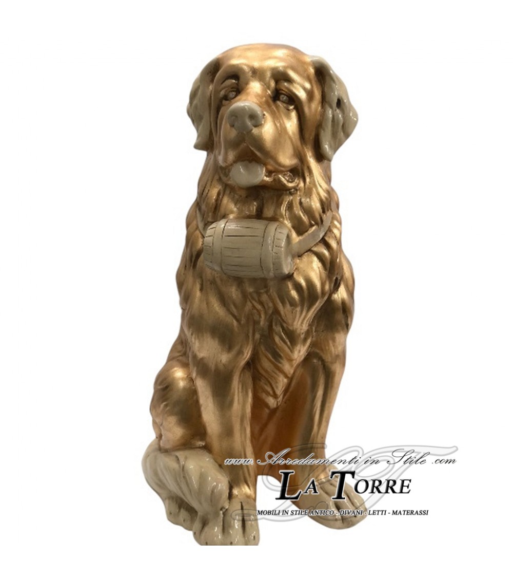 Ceramic animals statue sculpture dog Saint Bernard gold leaf swarovski H70cm PR12