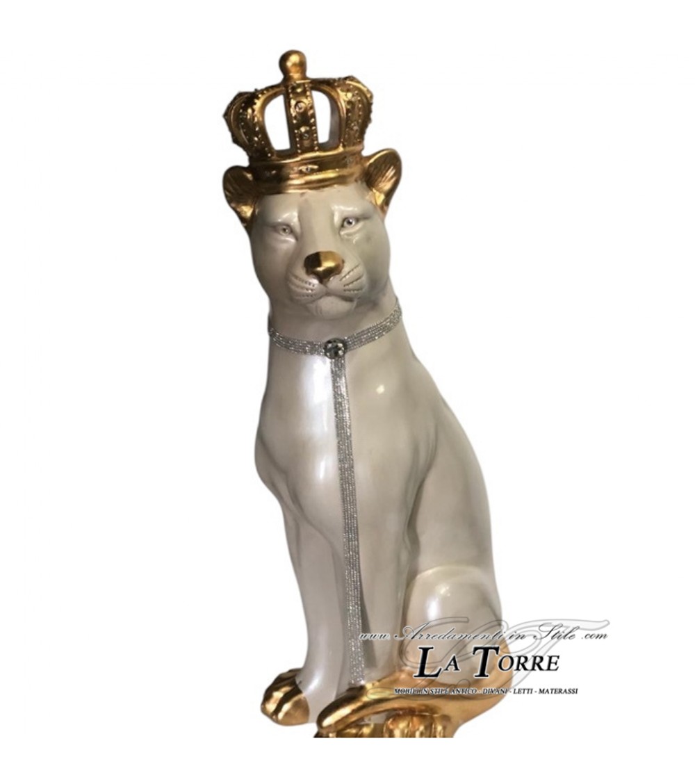 Ceramic animals statue sculpture Lioness crown pearly white gold leaf Swarovski h100 cm PR02