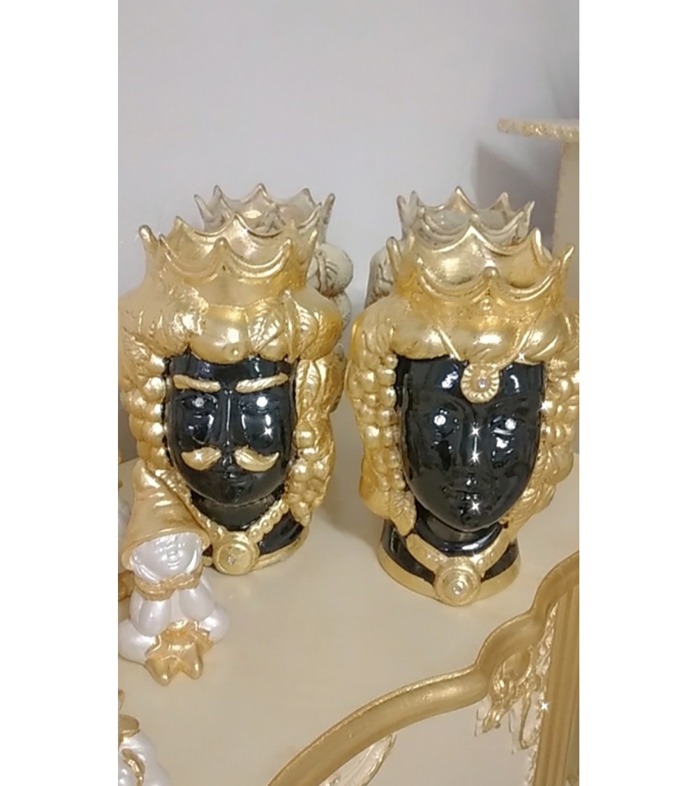 Black and gold Moor heads sculpture statue with Swarovski h 35 cm Caltagirone PR53 ceramic wedding favors