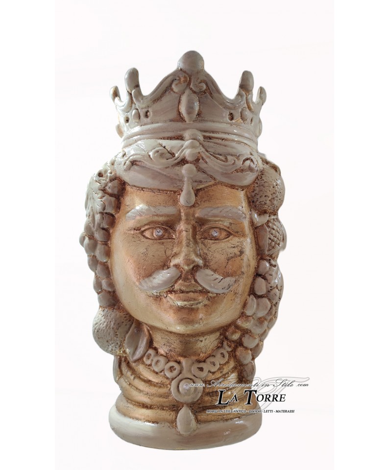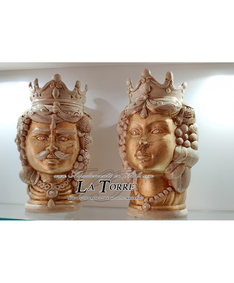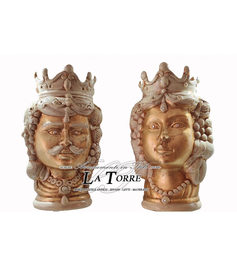 Moro heads sculpture statue in antique ivory and Swarovski gold h 35 cm ceramic favors Caltagirone PR53