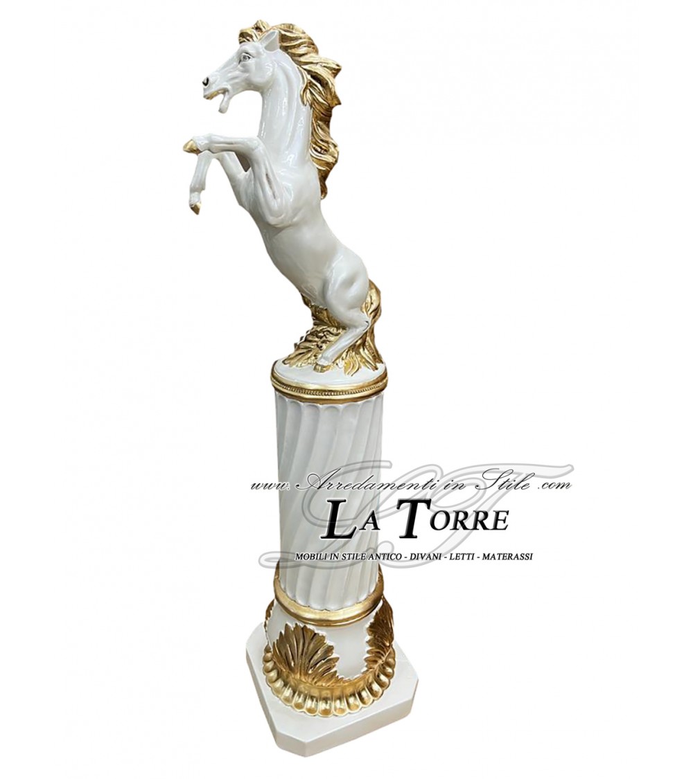 Prancing horse ceramic sculpture statue on ivory and gold column H115 PR61