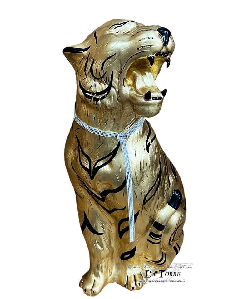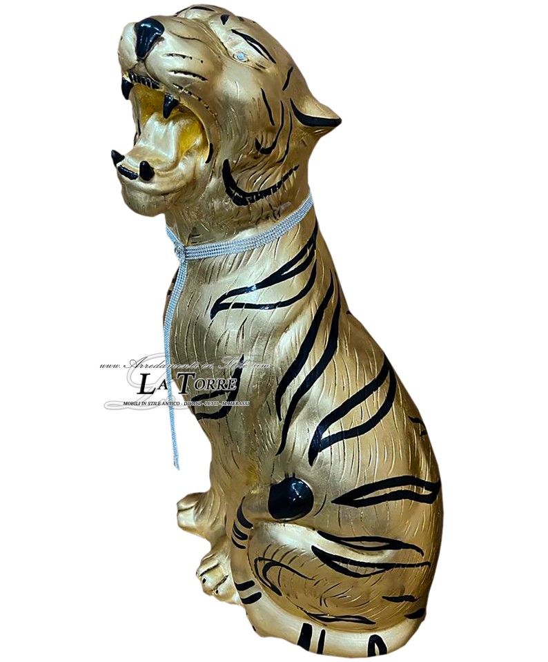 Ceramic animals statue sculpture Tiger open mouth gold leaf black stripes Swarovski 90 cm PR03