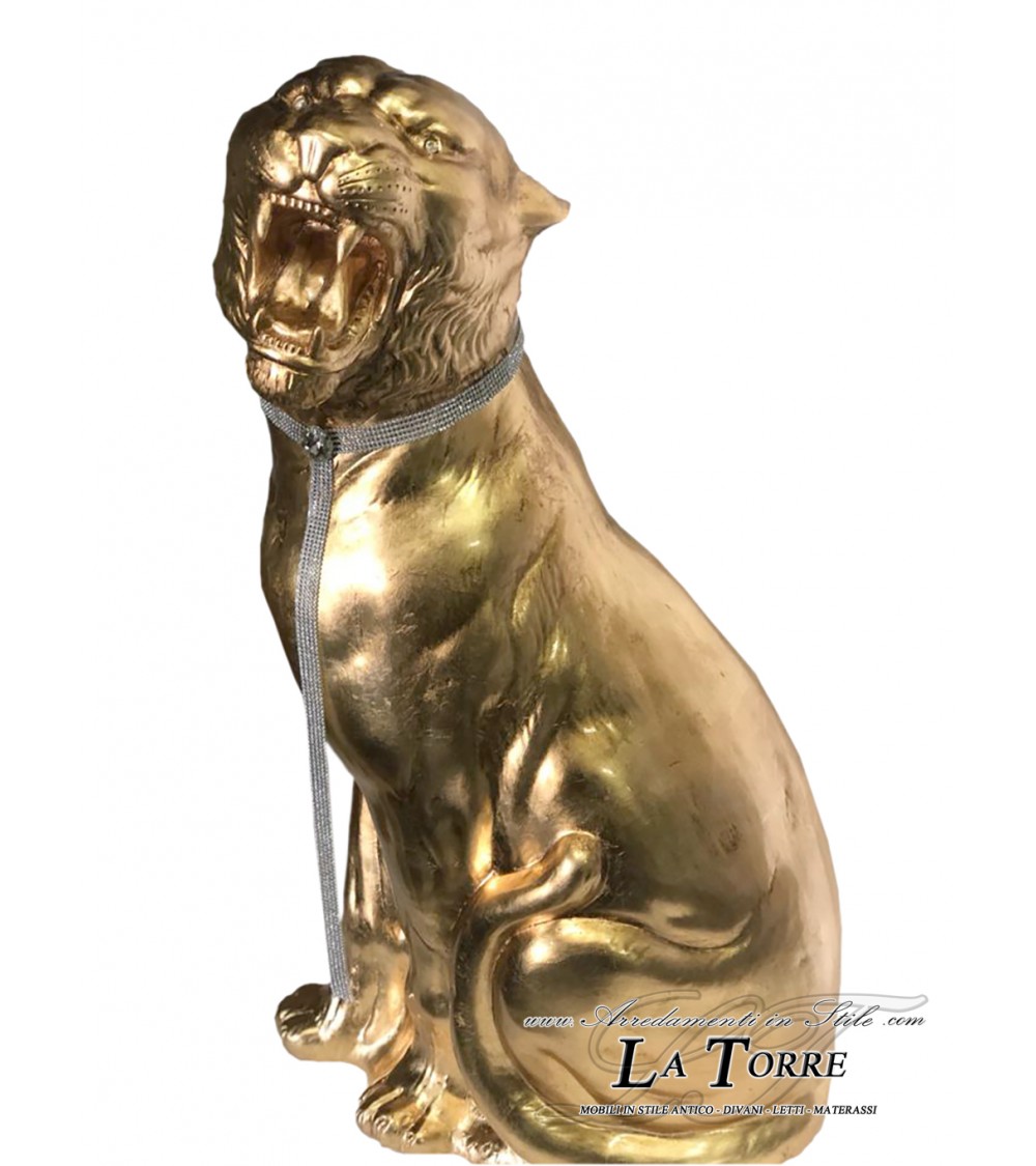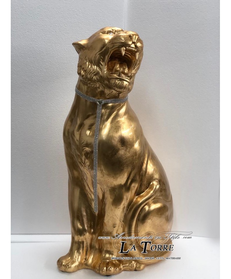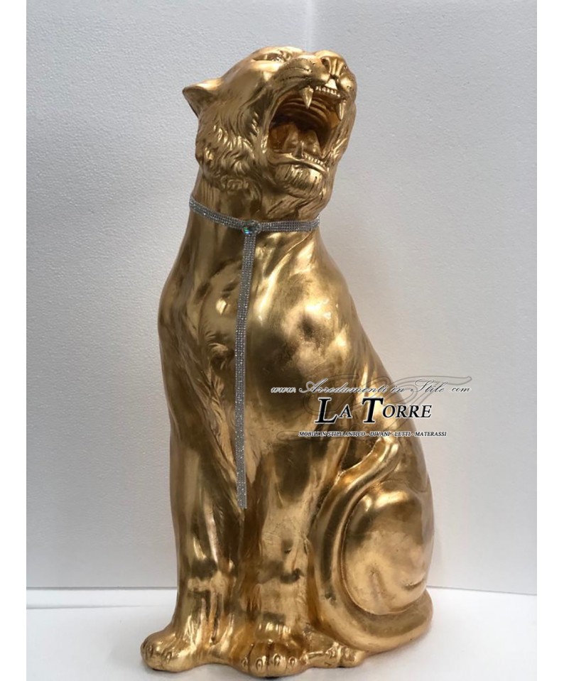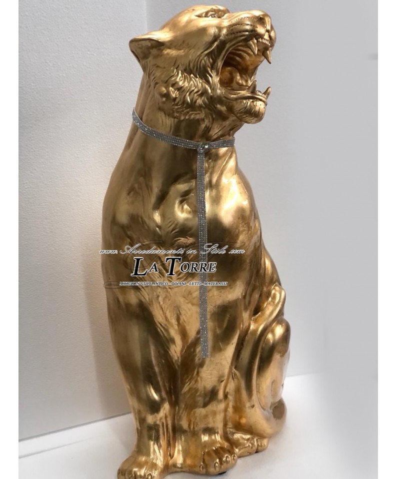 Ceramic statue sculpture Tiger open mouth Tiger gold leaf swarovski H90cm PR10