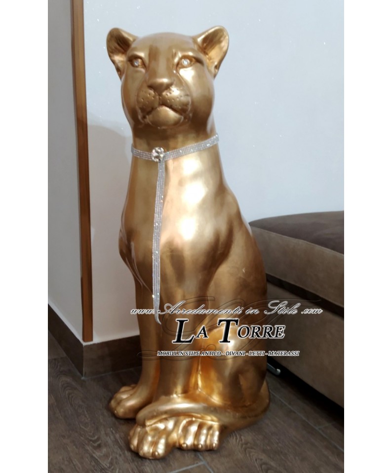 Ceramic animals statue sculpture Lioness closed mouth gold leaf with swarovski H90cm PR11