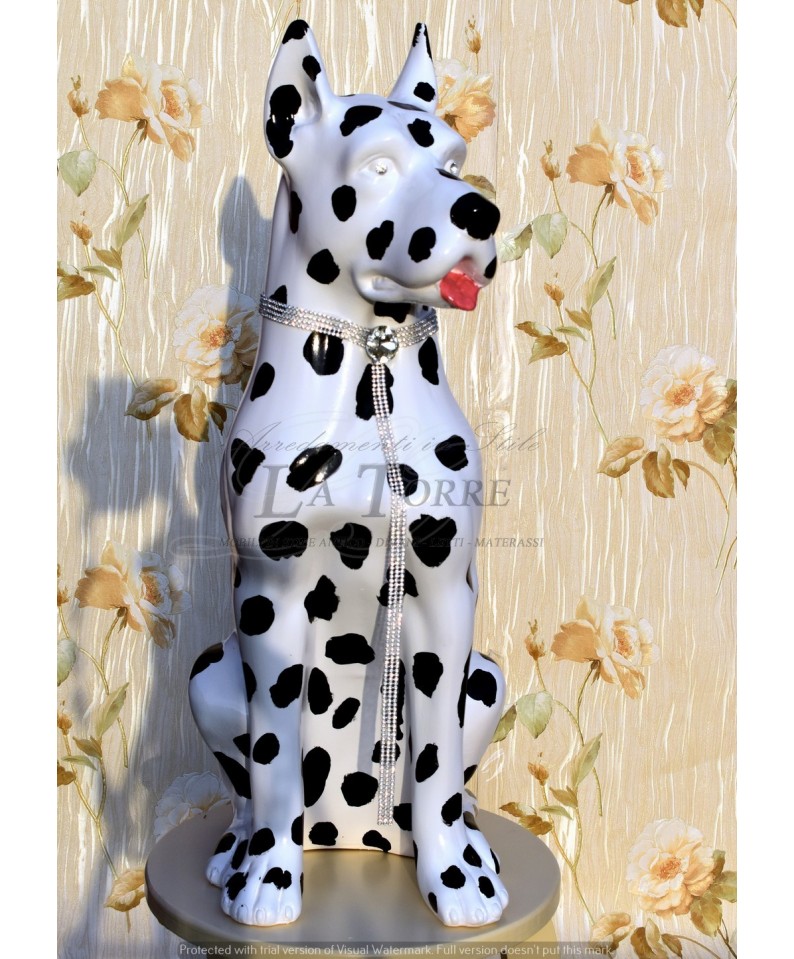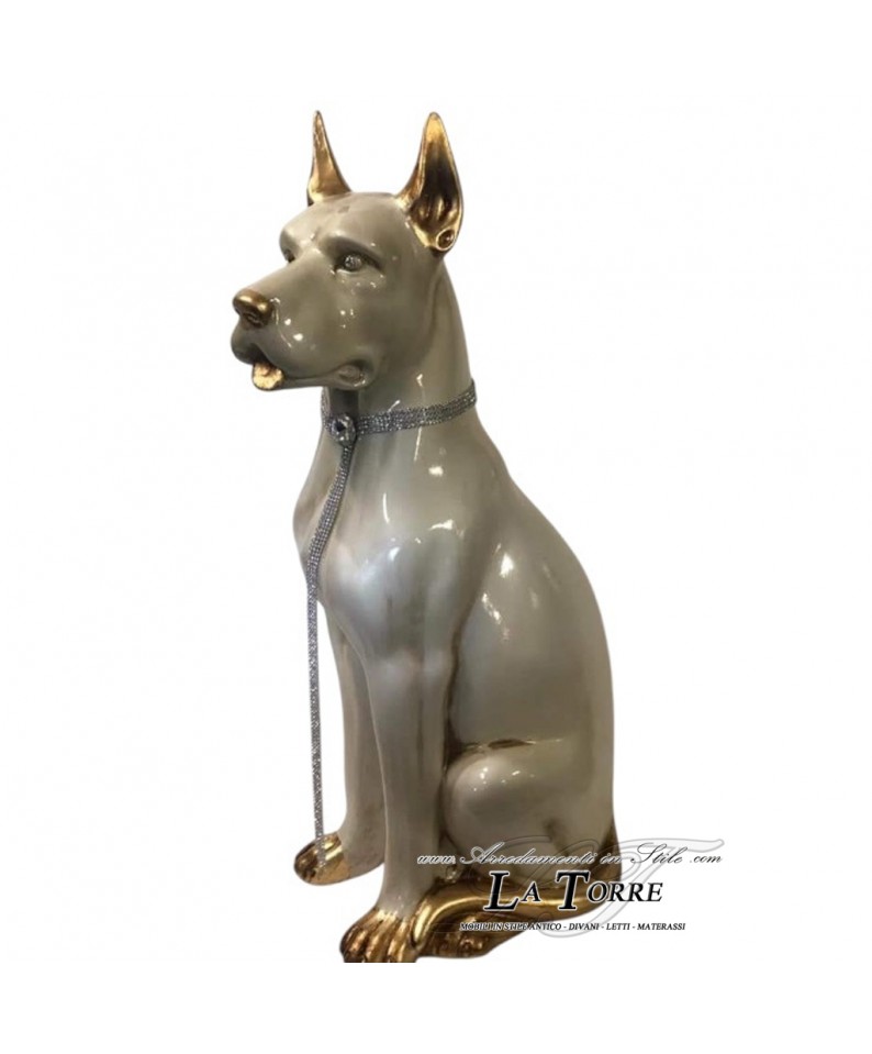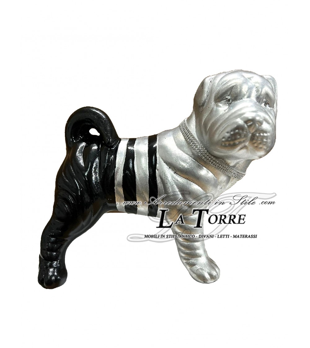 Ceramic animals shar pei dog statue silver leaf black stripes with swarovski h30cm PR27