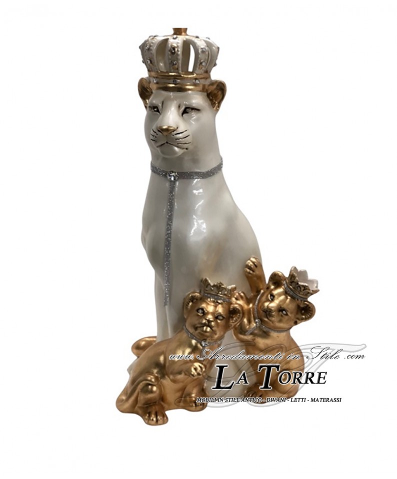 Ceramic animals statue sculpture Lioness crown ivory gold gold leaf swarovski h100 cm PR02