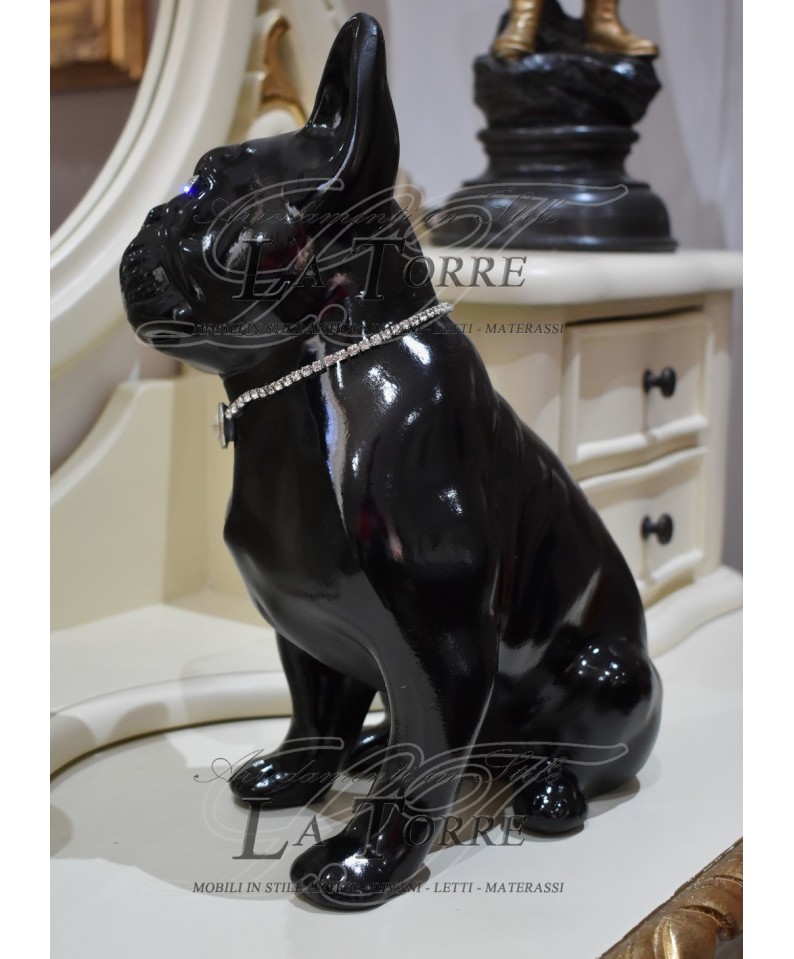 Statue sculpture puppy dog french bulldog dog black swarovski animals ceramic H30cm PR09