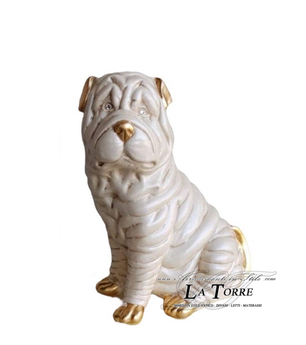 Ceramic animals dog statue furnishing accessories Swarovski dog shar pei white and gold ceramic H40cm PR28